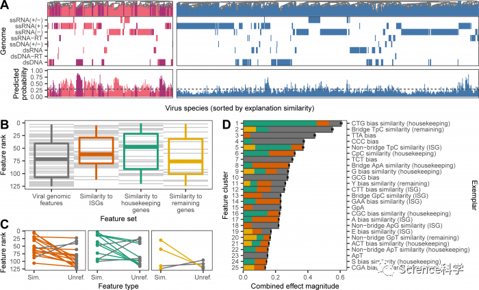 在人畜共患疾病出现之前识别它是一个重大挑战,因为在估计的167万种动物病毒中,只有一小部分能够感染人类。为了利用病毒基因组序列开发机器学习模型,研究人员首先汇编了一个来自36个科的861种病毒的数据集。然后他们建立了机器学习模型,根据病毒基因组的模式分配人类感染的概率。然后,作者应用表现最好的模型来分析从一系列物种中取样的其他病毒基因组的人畜共患潜力预测模式。