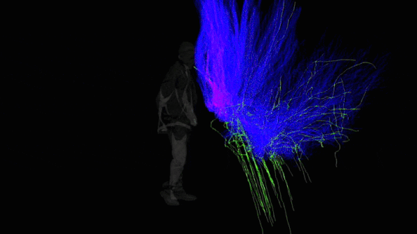 “即使我每次咳嗽都排出相同数量的飞沫,因为流动是紊乱的,所以有波动,” Mastorakos说。“如果我在咳嗽,速度、温度和湿度的波动意味着某人每次在两米处得到的数量可能非常不同。”