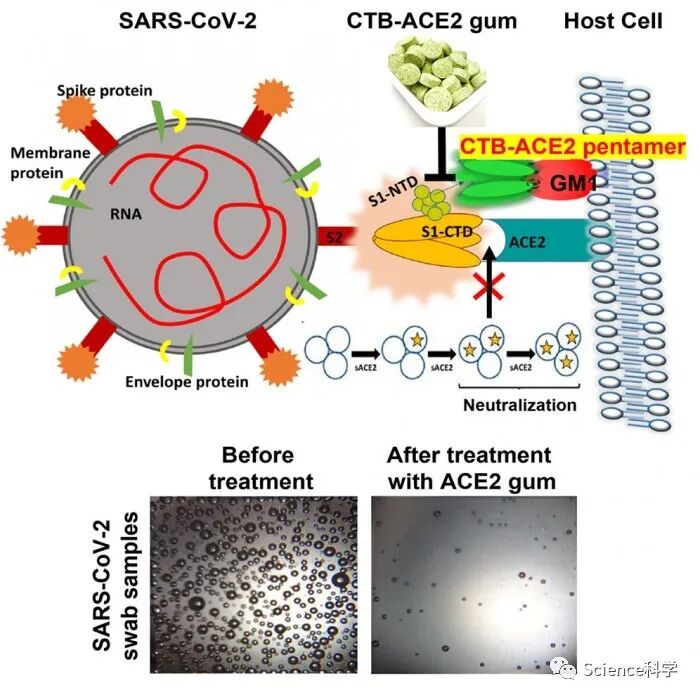 在试验中,新冠病毒颗粒会吸附在口香糖中的ACE2受体蛋白复制品上,从而导致样本中的病毒载量下降了95%以上,这将大大减小新冠病毒感染者通过飞沫传染其他人的几率。