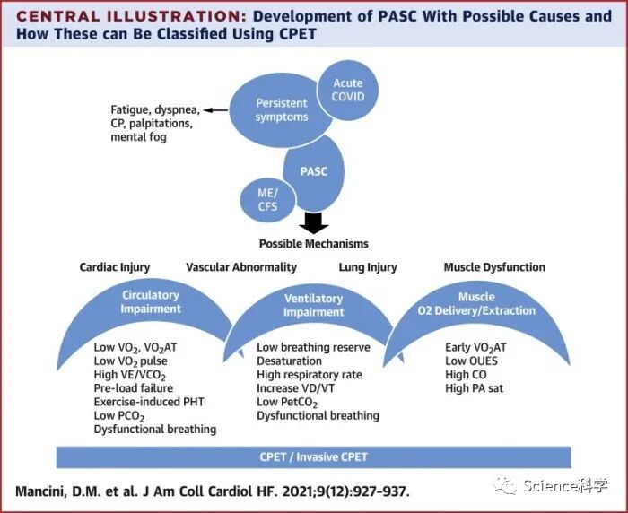 在这项研究中,研究人员观察了41名患者(23名女性,18名男性),年龄范围为23至69岁。患者是由肺科医生或心脏科医生转介到这项前瞻性研究的,并且都有正常的肺功能测试、胸部X射线、胸部CT扫描和超声心动图。患者在接受心肺运动试验(CPET)之前,曾被诊断为急性COVID-19感染,时间范围为3至15个月,并持续出现不明原因的气短。