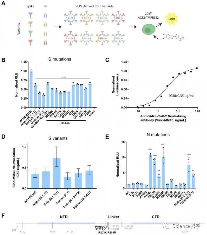 这项工作“揭示了一个惊喜,”Doudna说。根据VLPs的发光强度,“在Delta的核衣壳蛋白中发现的一个氨基酸变化使颗粒的mRNA比原始病毒多10倍!”感染了携带Alpha和Gamma变体中发现的N型突变的VLPs的细胞分别发出了7.5倍和4.2倍的光芒。