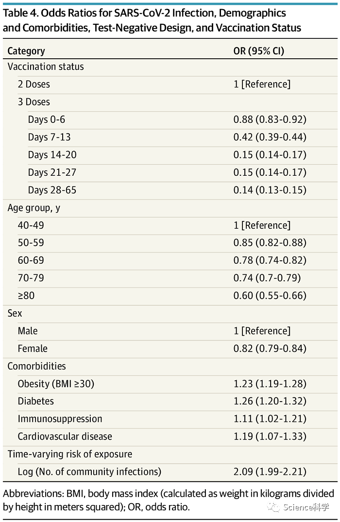 具体说来是,接种新冠疫苗加强针的群体中,报告 COVID-19 感染(阳性)的可能性要低 86%,且效力在研究覆盖的 65 天随访期内都保持一致。