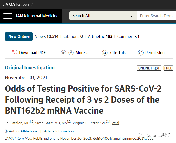 发表在 JAMA《内科学》期刊上的一项新研究指出,在完成了两剂新冠疫苗接种之后,第三剂“加强针”的效果也非常显著。据悉,这项研究追踪了以色列至少 30 万名受试者。与只接种两剂的对照组相比,接受第三剂辉瑞 mRNA 疫苗的实验组,其感染 SARS-CoV-2 的几率降低了高达 86% 。