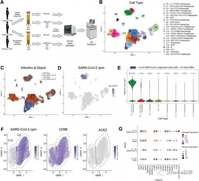 在这项研究中,斯坦福大学医学院的研究人员测试了减肥手术患者的脂肪组织,以了解他们是否会感染新冠病毒。他们观察了不同类型的细胞 -- 脂肪细胞,以及成为脂肪细胞的前脂肪细胞和称为脂肪组织巨噬细胞的免疫细胞。