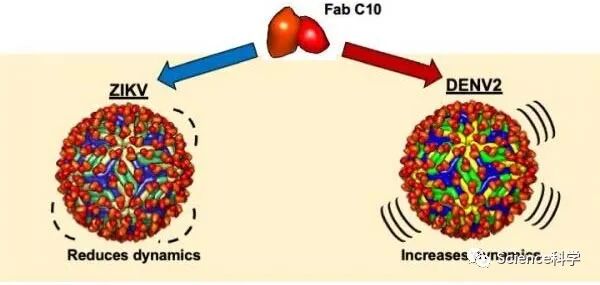 看来同一类型的抗体能够以两种不同的方式中和寨卡和登革热--一种是它与病毒结合并使其失活,这是我们对抗体活性的传统看法,另一种是它钻入并扭曲病毒。阿南德说,他的团队发现的扭曲策略可能也会被抗体在面对其他类型的病毒时使用。
