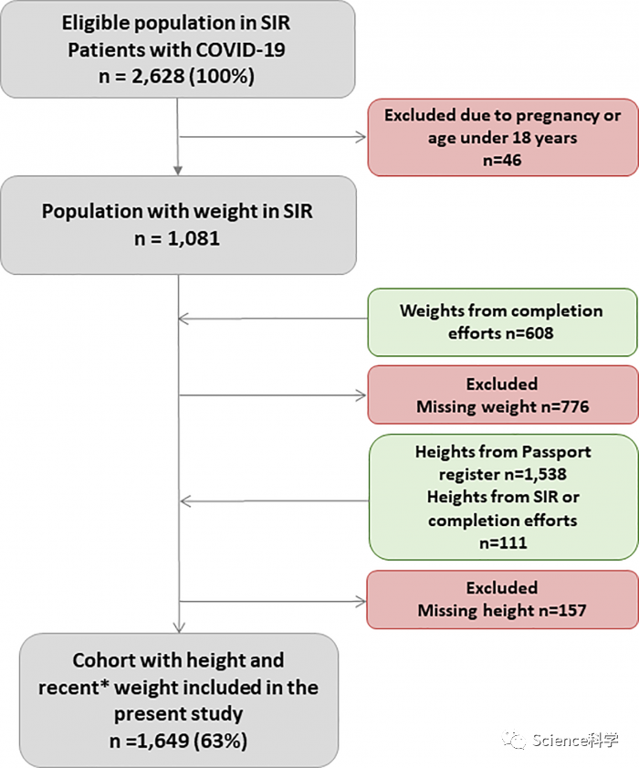 在这项新研究中,Sjögren及其同事分析了来自瑞典重症监护登记处的1649名COVID-19患者的数据,该登记处是一个覆盖瑞典所有ICU的国家质量登记处。纳入研究的病人是在COVID-19大流行的第一波期间,即2020年3月6日至8月30日之间被送入ICU的,96%的病人的SARS-CoV-2病毒PCR检测呈阳性或临床诊断为COVID-19,他们都在18岁以上,并且有当前体重和身高数据。