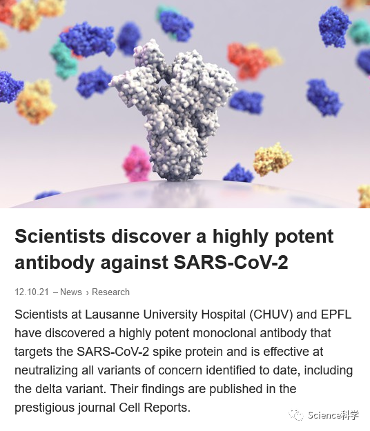 在新冠疫苗的帮助下,不仅能够预防新冠病毒的,还能大大降低患者出现重症的几率。但对于治疗新冠肺炎,目前几乎没有特效药物。据外媒报道,瑞士洛桑大学医院的科学家发表在《细胞报告》上的一项研究指出,发现了一种靶向新冠病毒刺突蛋白的高效单克隆抗体,不仅能够用于治疗患者,还能带来媲美疫苗的长久保护期。
