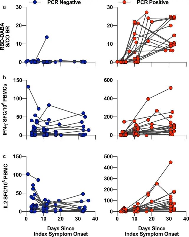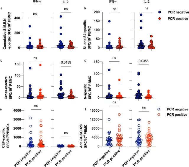 52名参与者的血液样本是在他们暴露于病毒后的1-6天内采集的。这使研究人员能够分析先前普通感冒冠状病毒感染所诱导的预先存在的T细胞的水平,这些T细胞也能交叉识别SARS-CoV-2病毒的蛋白质。[注释1]