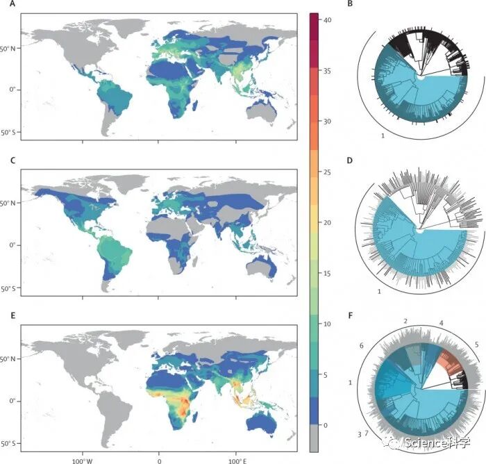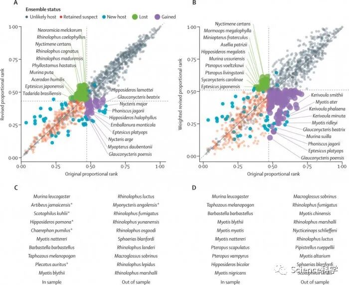 重要的是,他们修订的模型预测全球有超过400种蝙蝠可能是未被发现的beta变异毒株宿主,不仅包括东南亚,还包括撒哈拉以南非洲和西半球。尽管已知有21种马蹄蝠(Rhinolophus属)是类似SARS病毒的宿主,但研究人员发现在这个蝙蝠属中至少有四分之二的可信的beta变异毒株宿主可能仍未被发现。
