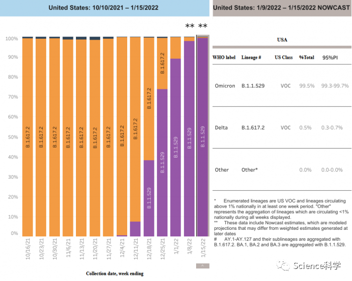在过去30天搜集的357206份病毒基因序列样本中,58.5%的样本为奥密克戎毒株,德尔塔毒株占比下降至41.4%。