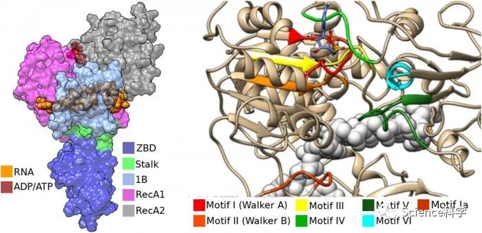 这种蛋白质被称为Nsp13,属于一类被称为解旋酶的酶,它在病毒的复制过程中发挥着作用。