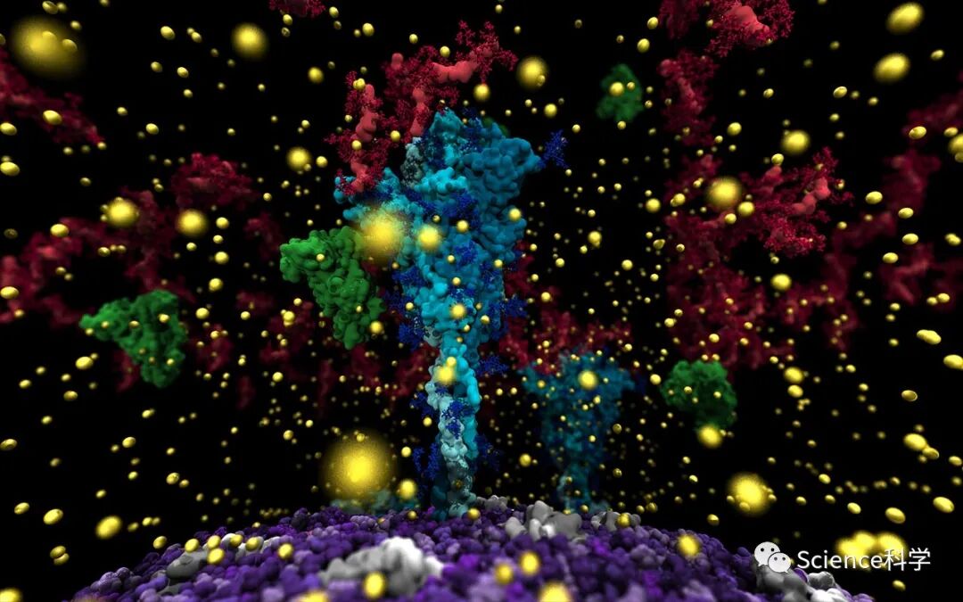 这些模拟包括病毒膜的更复杂的细节以及气溶胶的可视化。除了SARS-CoV-2病毒之外,这些亚微米级的呼吸道气溶胶还含有粘蛋白、肺表面活性剂、水和离子。