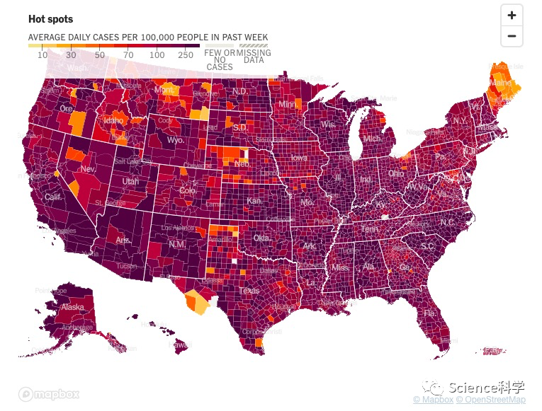 24小时确诊近80万:美国疫情数据地图几乎全紫了