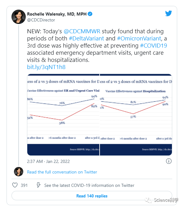 目前CDC的指导方针建议所有12岁以上的美国人在接种第二剂疫苗5个月后应该接受第三剂COVID-19疫苗。有资格接种第三剂疫苗的美国人中,只有不到一半的人接受了免费注射。CDC主任Rochelle Walensky在一次新闻发布会上说,这个新数据肯定了每个符合条件的人都需要接种第三剂疫苗。