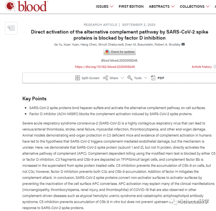 与其他研究一样,更多的研究应该进一步解释SARS-CoV-2对补体系统的影响。完整的研究报告可在此链接中获得。