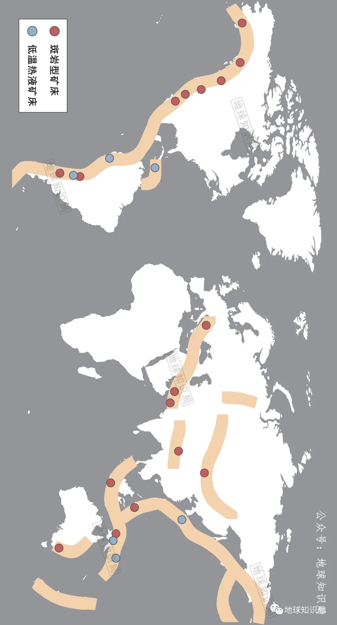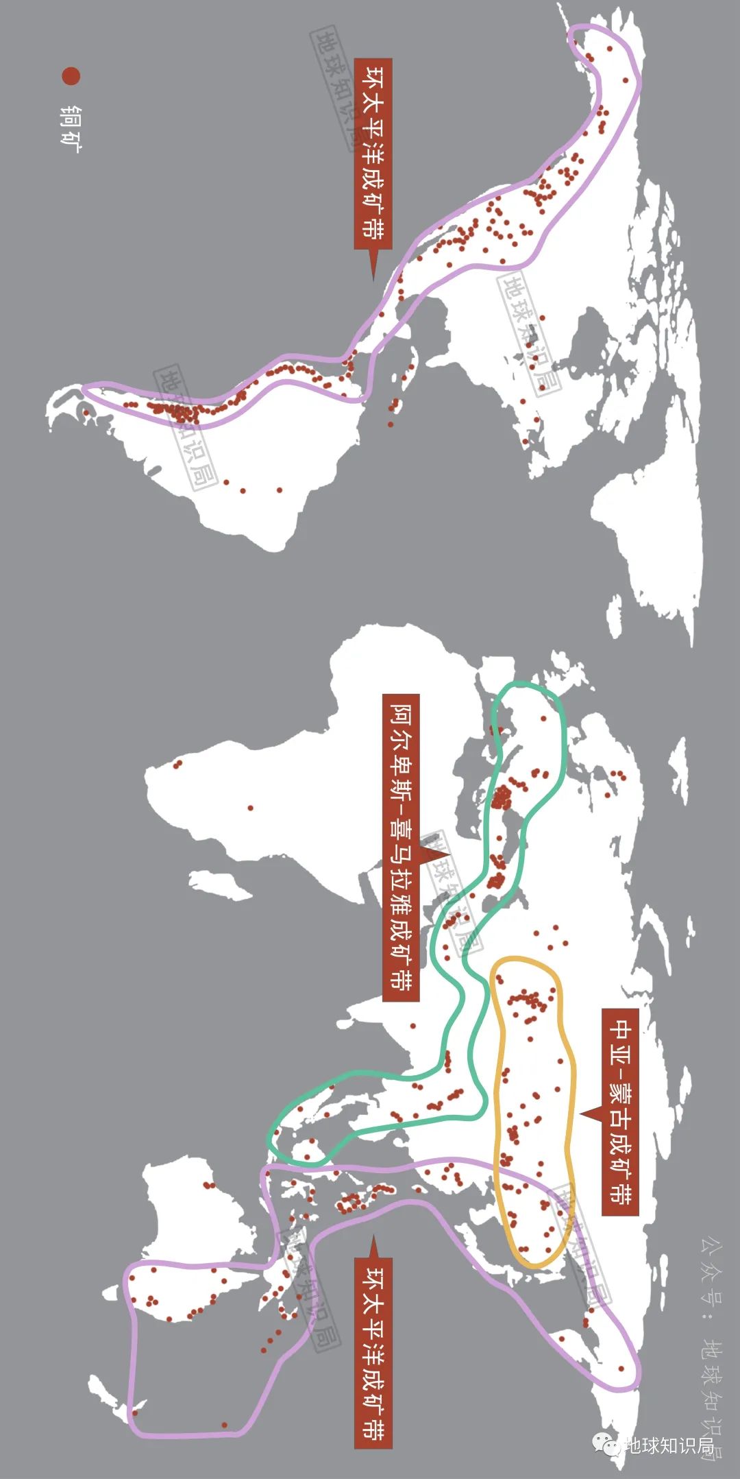 横屏-全球范围超大型斑岩铜矿分布图▼