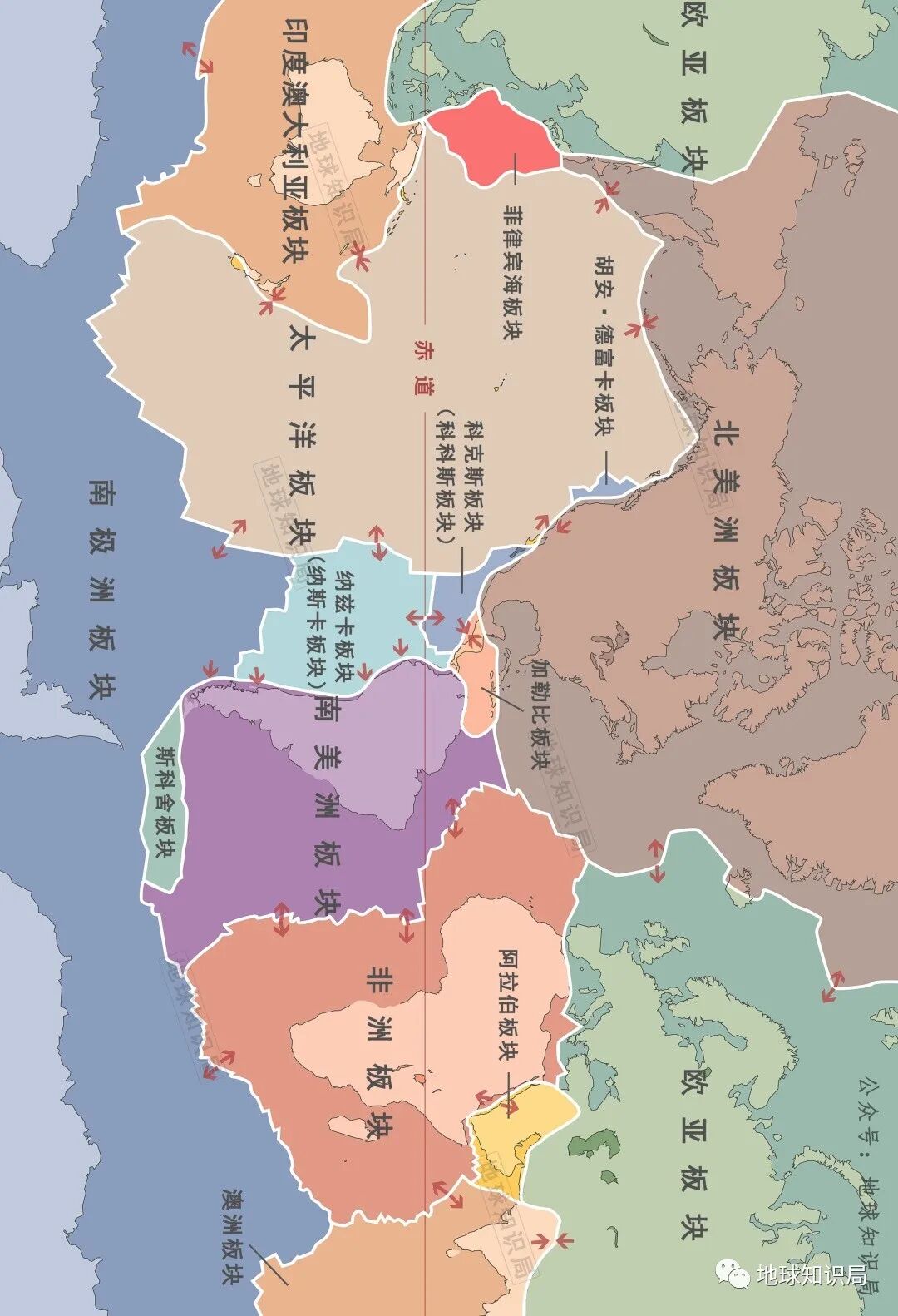 众所周知,现代地球科学认为,地球表层(岩石圈)是由厚度大约为100-150 km的巨大板块构成,全球岩石圈可分成六大板块,即太平洋板块、印度洋板块、亚欧板块、非洲板块、美洲板块和南极洲板块。