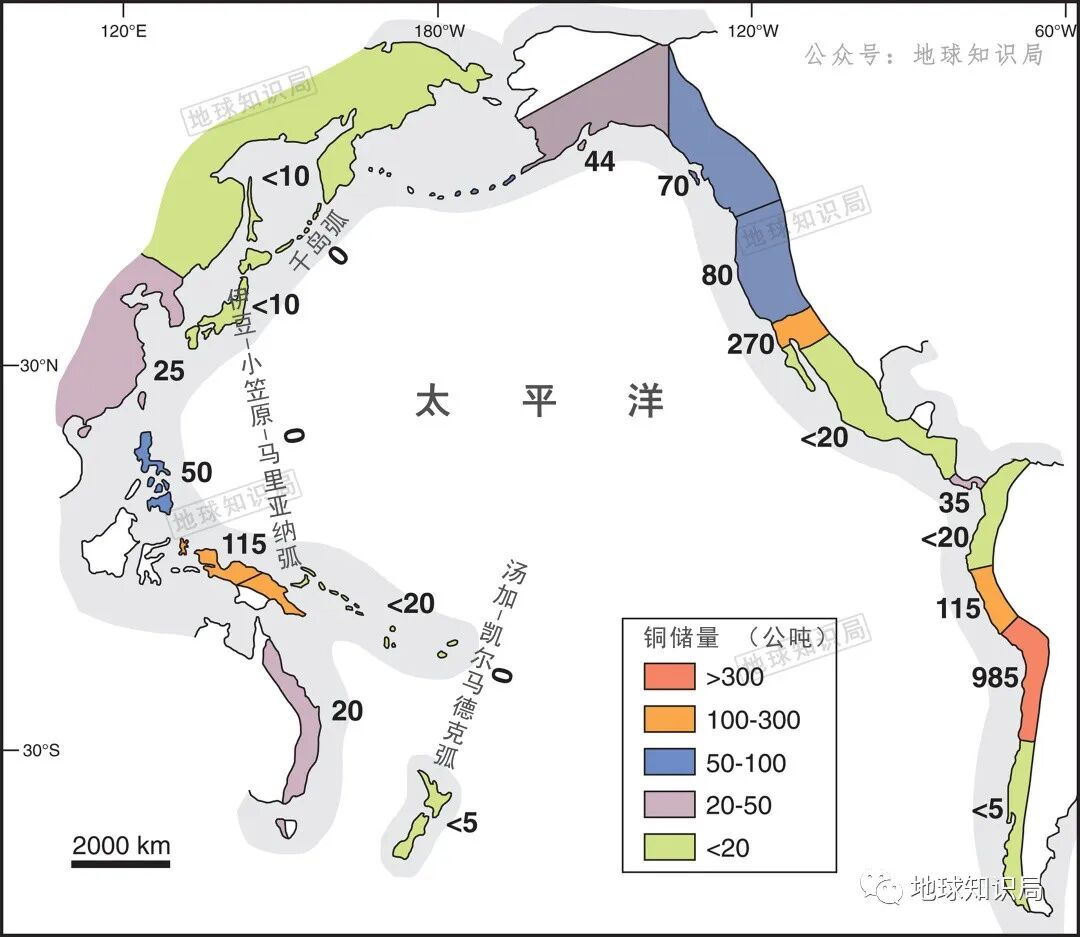 环太平洋成矿带在中日韩三国境内都没有大型铜矿床