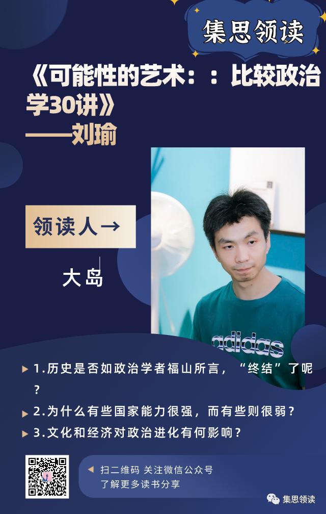 毫无疑问,比较政治学是这本书的主要议题,但我们必须把目光聚焦于“可能性的艺术”才有助于我们真正理解其内核。“政治是可能性的艺术”这句话最早出自俾斯麦,它通过“艺术”这个词表达了政治的力量,又通过“可能性”这个词表达了政治的限度。所以,这本书如果要提炼一个核心思想的话,那就是:政治创造可能,但是政治亦有其边界。
