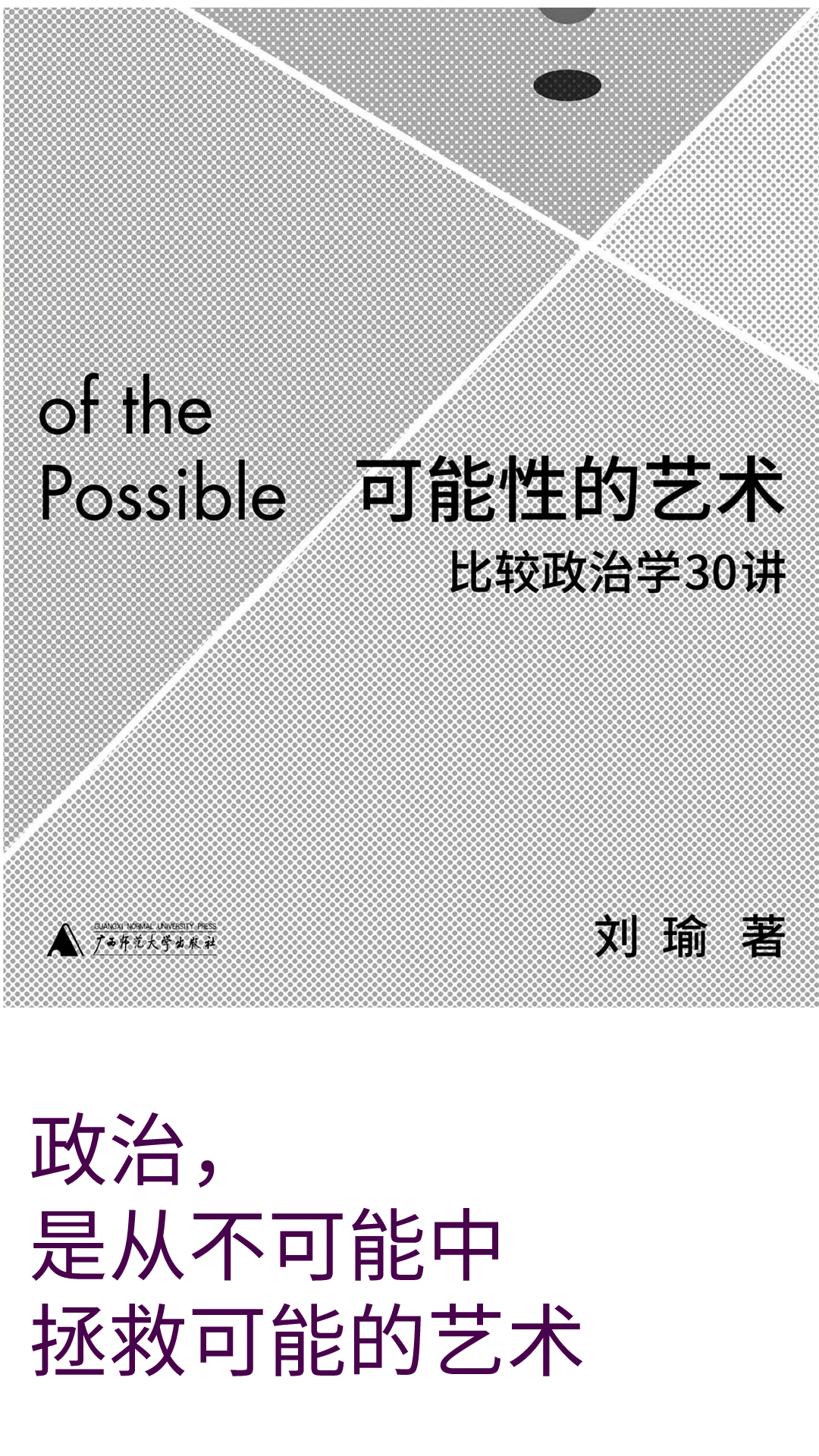 今年4月份,广西师范大学出版社推出了一本新书,叫《可能性的艺术:比较政治学30讲》。作者刘瑜是一位75后的清华大学副教授。作为网络圈子里的红人,刘瑜不仅写学术随笔,还写小说、政论书籍,因此不少人应该对她早有耳闻。今天向大家介绍的这本《可能性的艺术》原本是作者在“看理想”平台制作的一个音频课程的讲稿,因为颇受欢迎,便整理成书。在这本书中,作者围绕时代背景、政治转型、国家能力、政治文化和政治经济这五个主题,分30讲向读者呈现政治这个“大海“。不过,作者对政治这片大海的瞭望有自己独特的视角:比较政治学。在作者眼中,比较政治学中的“比较”,与其说是一种具体的研究方法,不如说是一种研究的视野。当你把你所面对的政治现实当作一万种可能性之一来待时,你就获得了一种“比较的视野”。这也是为什么作者给这本书起名《可能性的艺术》的原因之一。