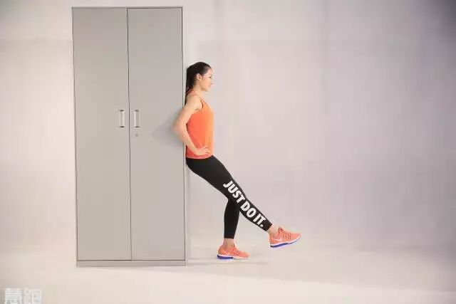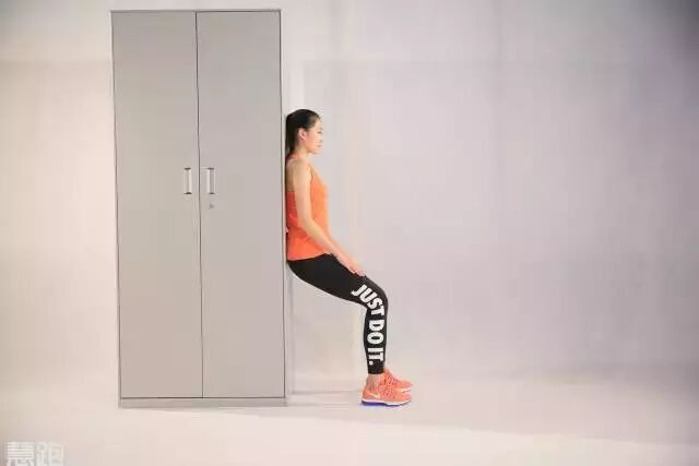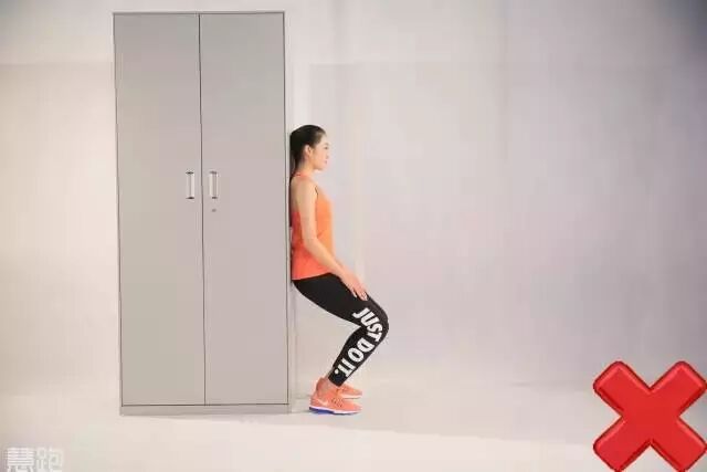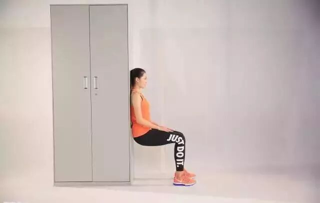 靠墙静蹲的关键动作是保持小腿与地面垂直,所以身体实际上斜靠着柜子或者墙壁,如果出现小腿不与地面垂直,或者膝盖超过脚尖,这不仅不能增强腿部力量,反而导致膝盖压力增加,越练越痛。