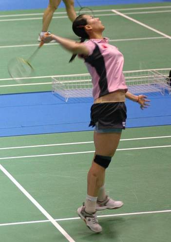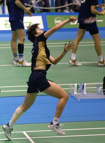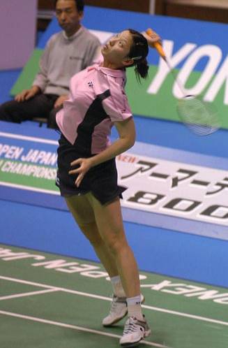 只有食指收回,手成握拳状,才能在击球一瞬间充分用上手腕动作和力量,许多人高远球(杀球)无力,一个关键错误就在此。