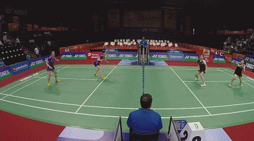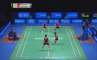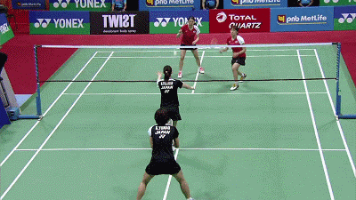 11)当对手回球太快时,要注意躲避,让出位置来,给后场搭档去接球,不要僵硬的站在网前“堵枪子”,也不要举着拍子拦截,因为拦过去的球往往很高直接被封死。