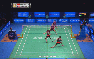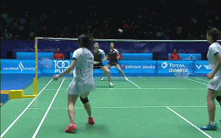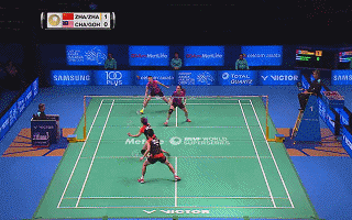 当张楠吊球时,观察赵芸蕾的移动