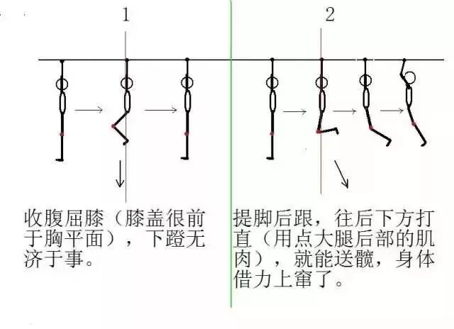 羽毛球的发力不是“从头开始”,而是“从脚开始”。大家回忆一下是不是在球场上也看到过这样的单杠“挣扎”脚动作?