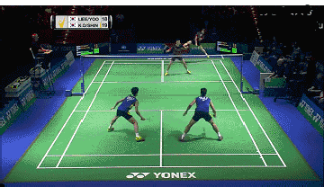 这点大家应该有所体会,单打的时候勾对角,吊球,搓球都能很好的消耗对手的体力,但是双打中,这样做,则会给其中一个对手休息的空挡。所以,双打中,杀球都是杀直线,杀一个点,包括封网,也是对着一个点打,百密总有一疏。