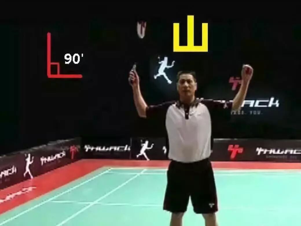 在网球大力发球中,身体和大臂、大臂和小臂的角度是要求2个90度或大于90度,羽毛球杀球先追求力量速度准确性的基础上再追求美观。也是要求2个90度或者大于90度,但是不能小于90度,这样会使肌肉紧张。