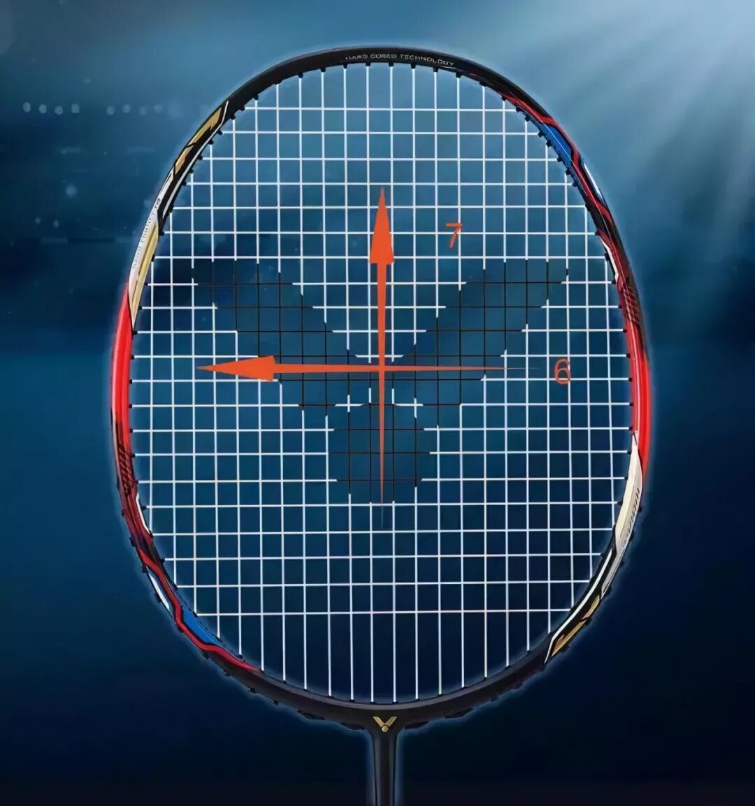 如果球拍穿线磅数很充足,那还得看看穿好的球拍是否跑线。球拍中间的四条竖线,正处甜区中心,是球线击球时的“主力军”,这几条竖线在穿线时是最开始穿的,也是最容易掉磅的。