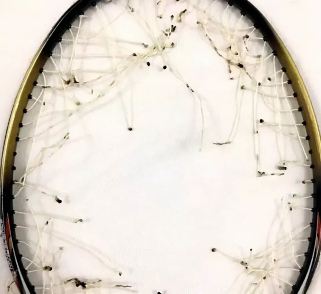 中间这几条线掉磅多了就会出现跑线,使得击球感变的更“软”,打球中频繁出现的跑线也十分影响打球体验。