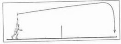 沿上图轨迹的高远球,一般球速较快,飞行最高点很靠后,对手无法突击,甚至要完美回击都很困难。所以要打出这样的球,才能有和高手抗衡的一点资本。