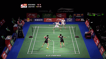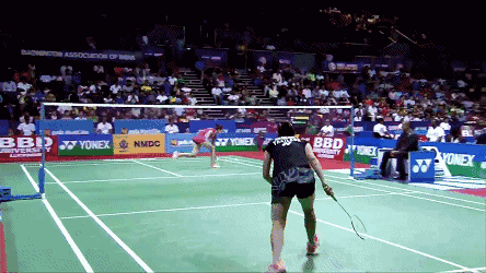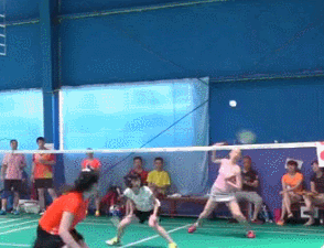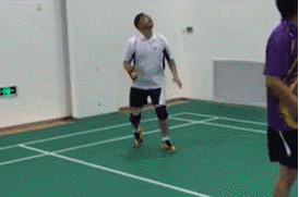 在场上养成打后场球蹬跳的习惯,交叉换步挑,双脚跳,但不要跳太高、有这个动作就行,主要是提高击球点、利用上蹬跳的力量,增加发力时的力量,并且使发力更顺畅。看看因达农教科书般的实战演练▼