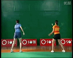 两个人站在网前互搓,这种练习方式是两个人有了一定的基础之后,双方可以在网前搓到连续性。