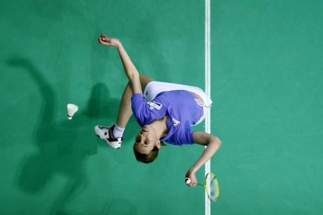 杀球前身体后仰,基本成弓型,这样使你用上全身所有的力量。
