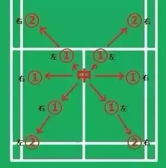 从图上可以看到,前面两点和后面两点的跨步都是两步,但是前面两点的第一步相对第二步较小,后面两点的第一步和第二步长度相差相对不大。而左右两腰都是一步迈出到位。另外,如果网前两点能够一步搞定,就不要两步搞定。
