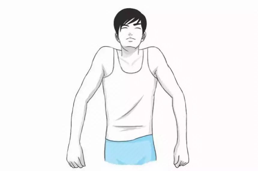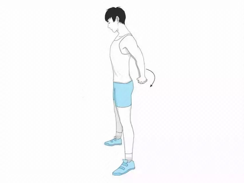 身体采用自然站姿或是坐姿,保持上身正直,双手背后握。手臂应该朝下面伸展。肩部要往外旋,不要耸肩。