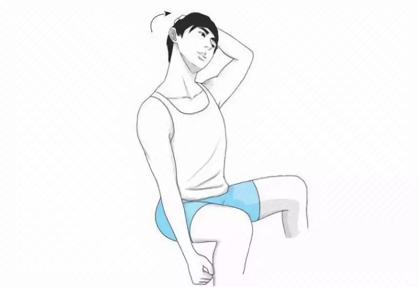 坐姿侧身拉伸可以促进腰部的血液循环,缓解腰肌的劳损状态。