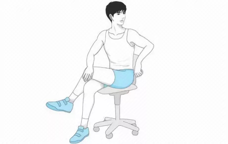 身体坐在椅子上,左腿屈膝伸到右腿的外侧,用右臂的手部支撑在左腿关节处,左手自然向后,头部向左扭转,右手帮助左腿向右拉伸,感觉到腰部拉伸后停留5-15秒钟,两侧动作交换进行。