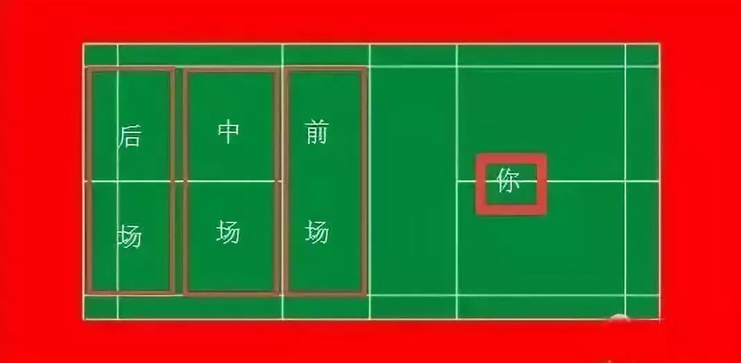 对手击球时的站位基本有三种情况:一是网前、二是中场、三是后场。
