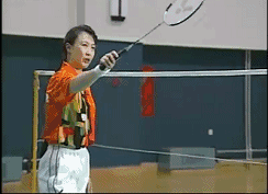 推球时,身体稍往前移,右前臂往前伸并带内旋,食指向前压,小指和无名指突然握紧拍柄,使球沿边线飞向后场底线。在挥动过程中,拍子回收。