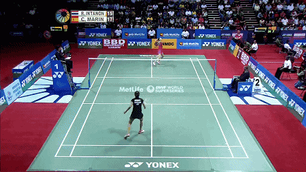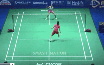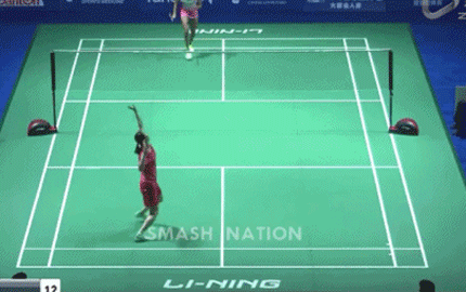 明明看见某球手的站位在中场,当对方打来了一个快速的头顶区平高球,不知怎么搞的,他一转身便到了后场,很及时地处在了一个很有利的头顶区击球位置和击球姿势,可以根据形势任意选择拉、杀、吊。