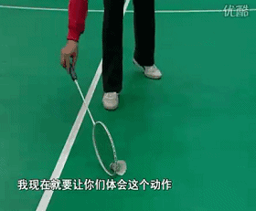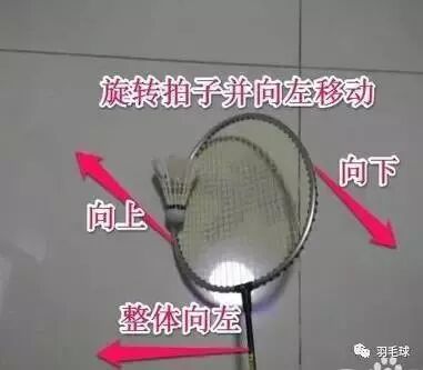 用手指捻动拍柄,使拍子转动,此时拍头要去抄球托的侧面,然后小臂顺势向左上侧移动,把球抄起。