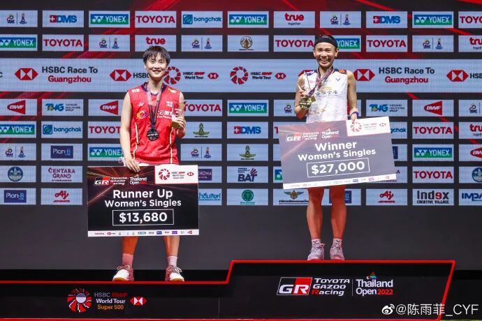 去年东奥金牌战,小戴和陈雨菲大战3局,最终以18-21、21-19、18-21“银”恨,但银牌成绩仍是首枚中国台北奥运羽球单打奖牌。今年泰国公开赛是两位一姐东奥后再度对决,同样打满3局,不过这次是小戴以21-15、17-21、21-12拿下1小时又2分钟的大战胜利,收获本季首冠及2万7千美元的冠军奖金。