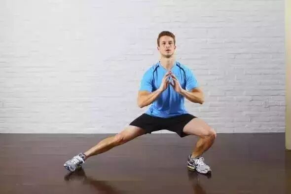 同样先拉伸右侧,保持5次以上呼吸;继而换成左边继续拉伸,同样保持5次以上呼吸。这组动作在拉伸胯部的同时,也拉伸到了下肢的屈肌。