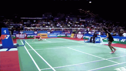 精彩绝伦的羽毛球极限救球集锦把球场当泳池