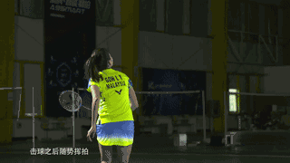 这就是球友脚步大小没调整好,最好是球往后场飞,人跟着球往后退,一定要退到球的后面,调整脚步,如果球快出界了也要跟上以防判断失误,步伐一定要灵活,尽量保证球在身体前面。