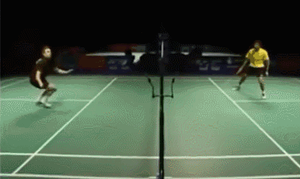 ②原地下蹲躲闪,这样无论是对手扑追身还是推两腰,球都能被后场的搭档接出,而不至于被网前的自己挡住,而且这样对手如果切网前外角,自己还是能够到的